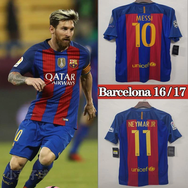 2016-17 season Barcelona home kit featuring Messi, Pique, Xavi, Iniesta, Suarez, and Neymar Jr. (Retro football jersey)-Fan Edition